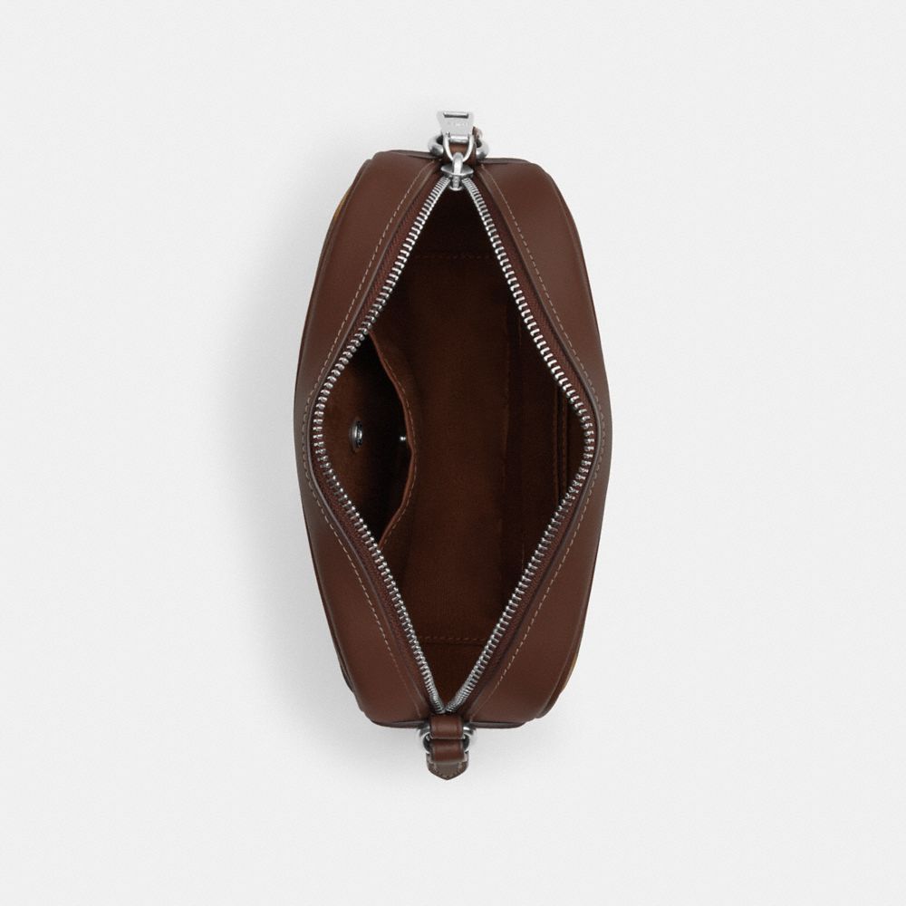 | Signature coated canvas and smooth leather | Two credit card slots | Inside multifunction pocket | Zip closure, fabric lining | Outside open pocket | Adjustable strap with 22 1/2" drop for shoulder or crossbody wear | 7 3/4" (L) x 5" (H) x 2 1/2" (W)|Style No. CR175|