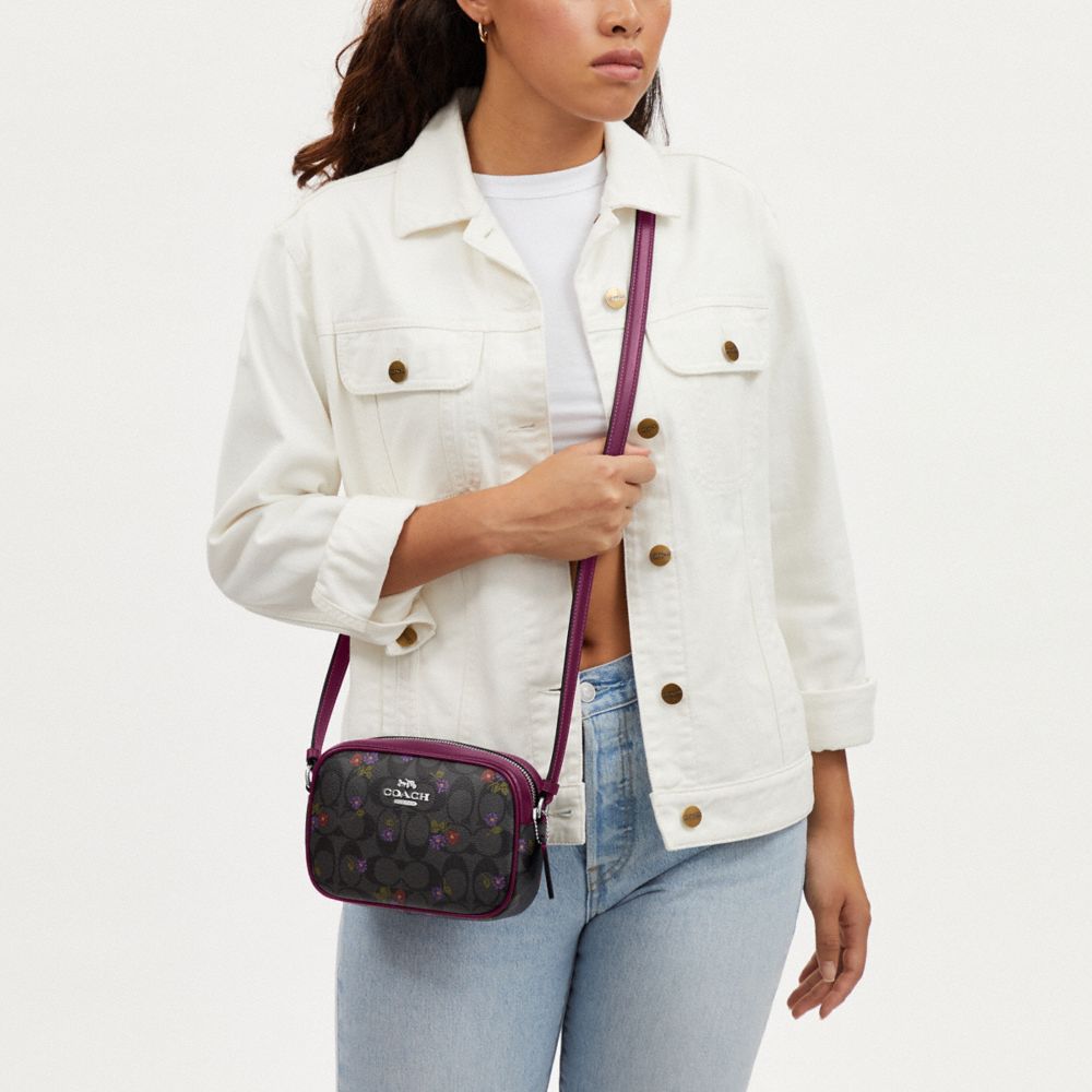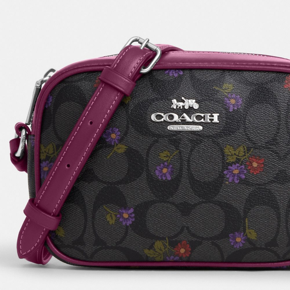 COACH FACTORY OUTLET PRICE CHART - CM958 - MINI JAMIE CAMERA BAG IN SIGNATURE CANVAS WITH COUNTRY FLORAL PRINT - SILVER/GRAPHITE/DEEP BERRY