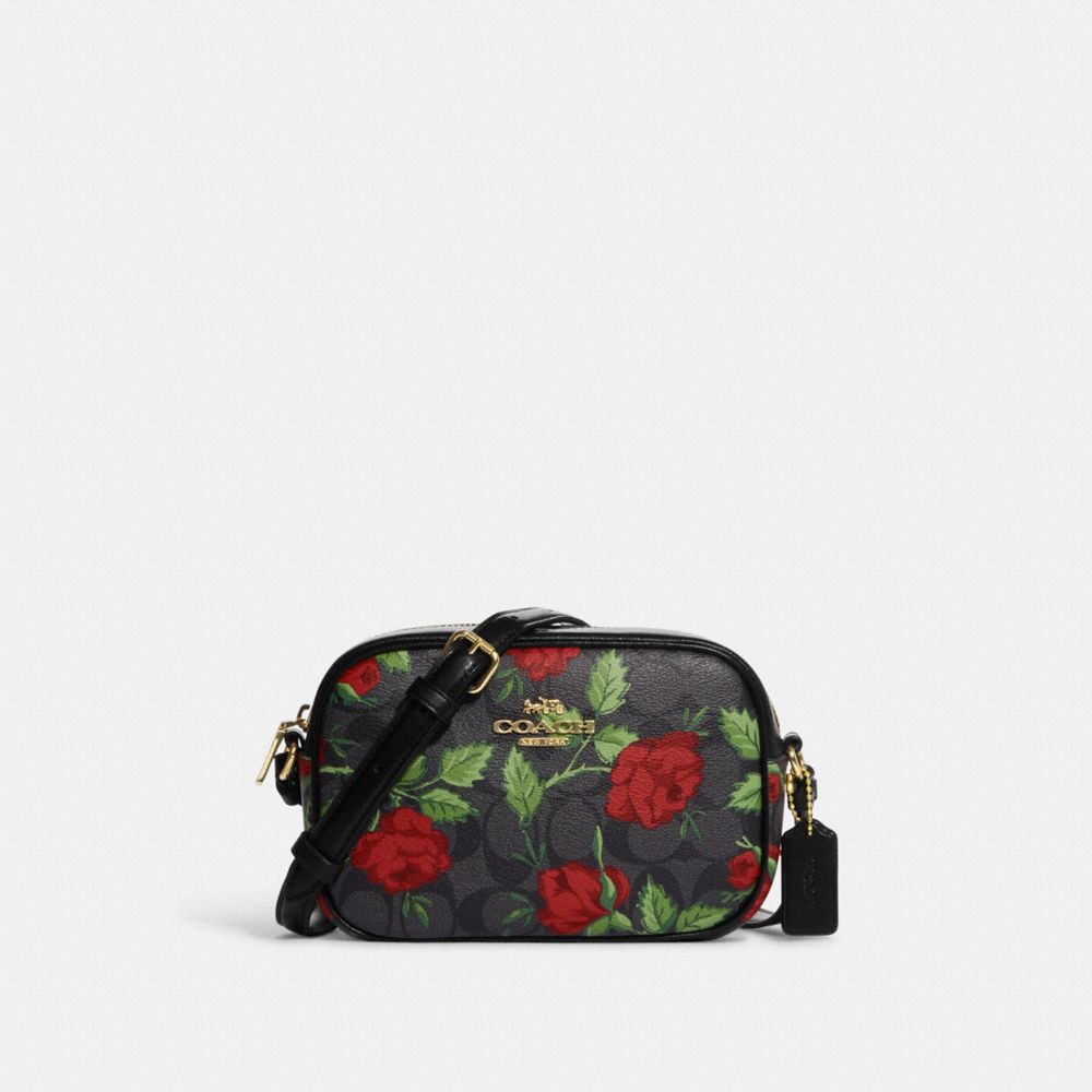 COACH FACTORY OUTLET PRICE CHART - CC342 - MINI JAMIE CAMERA BAG IN SIGNATURE CANVAS WITH FAIRYTALE ROSE PRINT - IM/GRAPHITE/RED MULTI