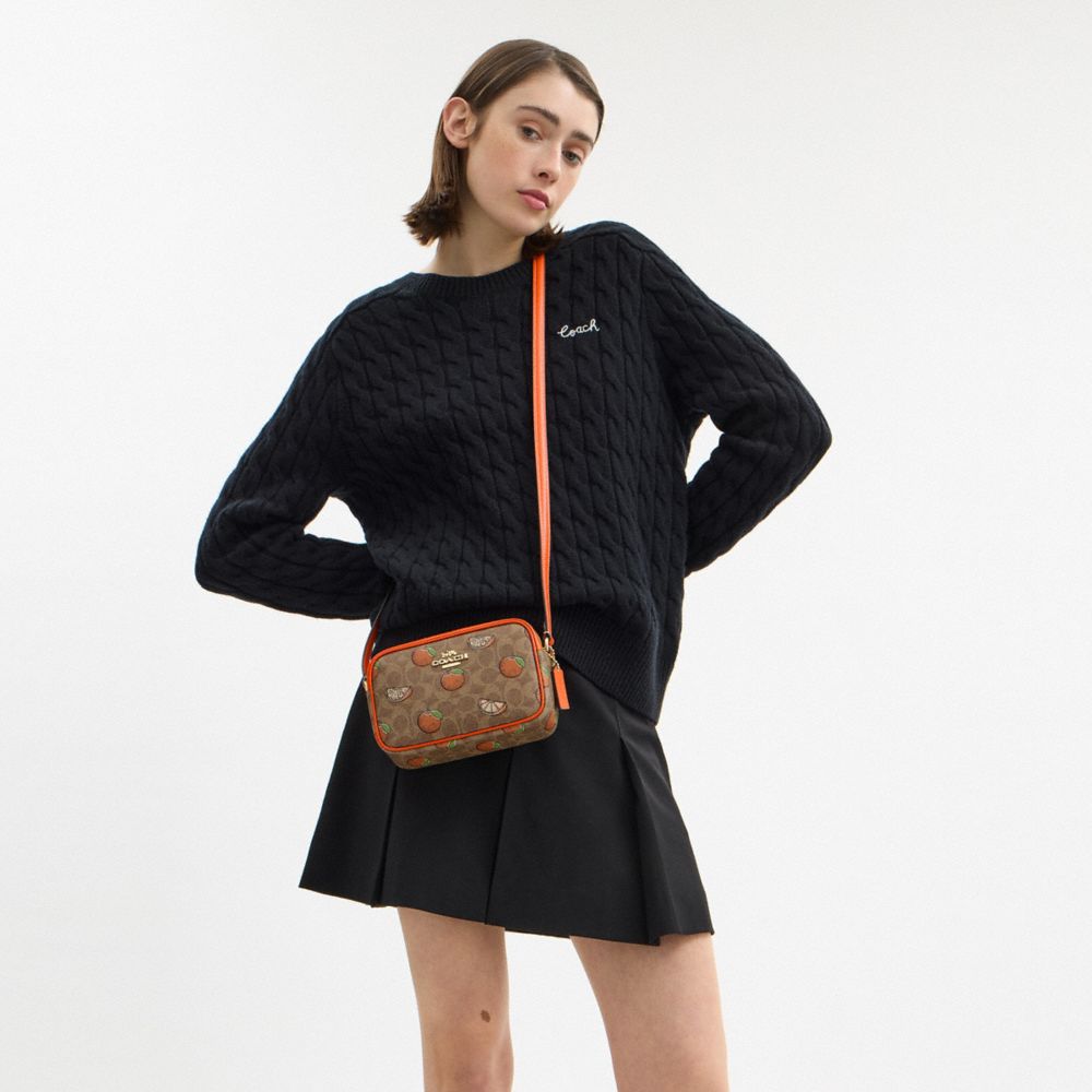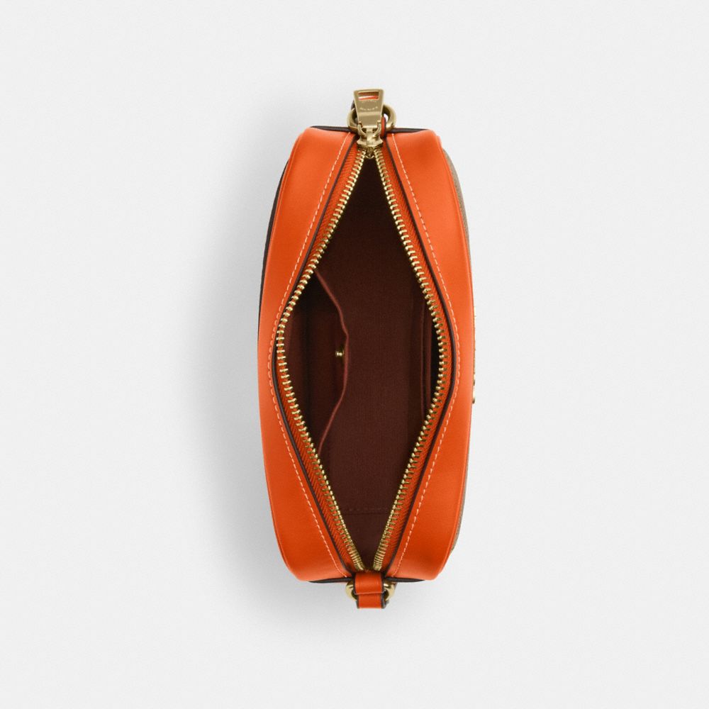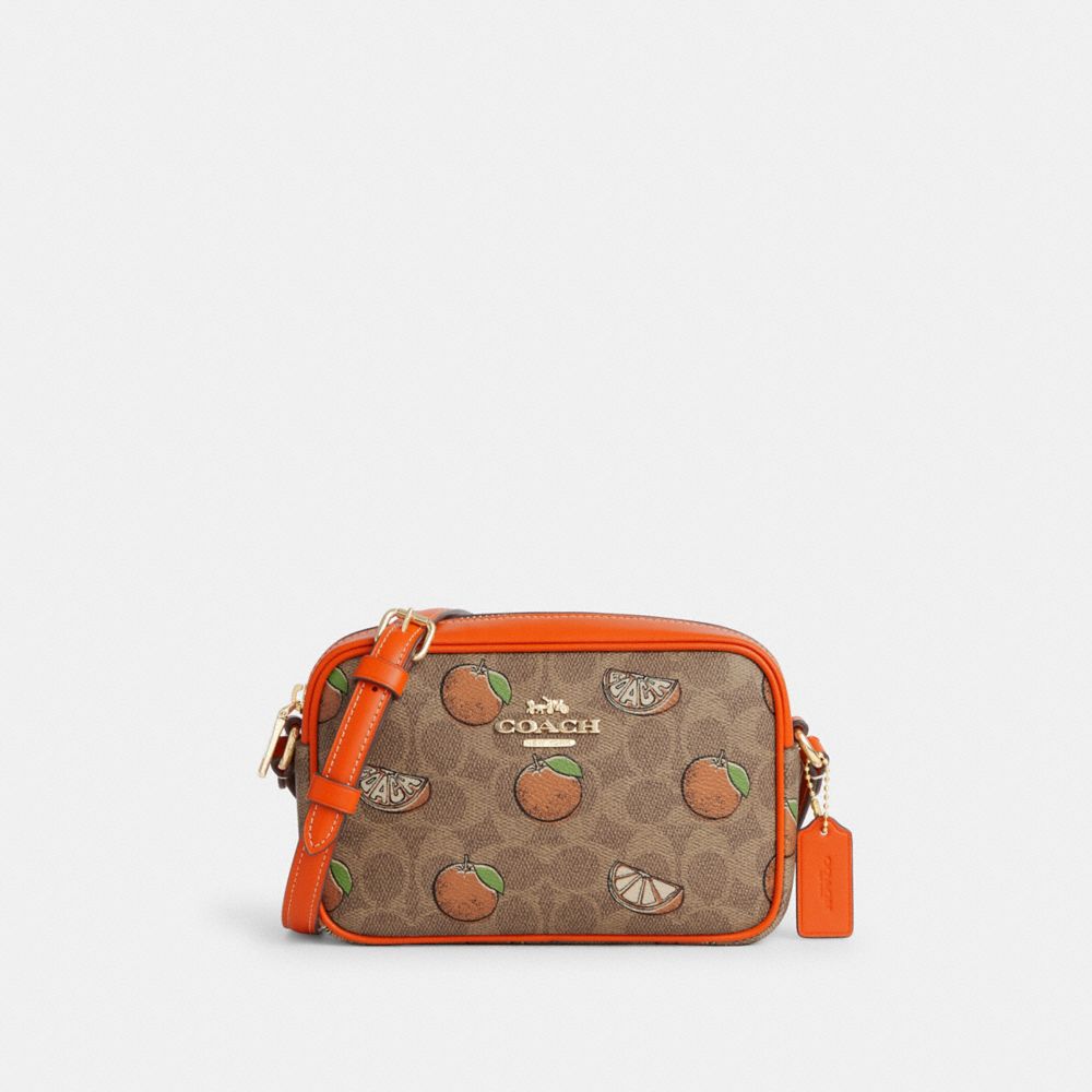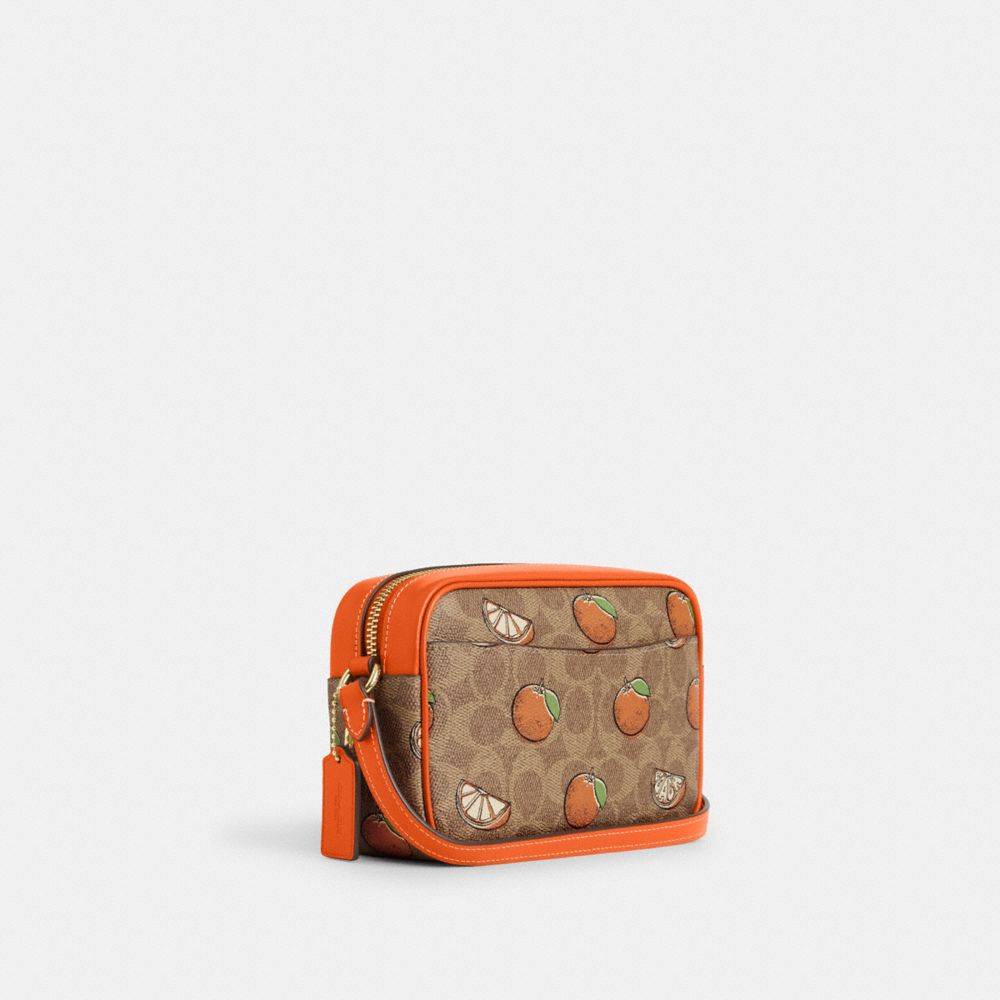MINI JAMIE CAMERA BAG IN SIGNATURE CANVAS WITH ORANGE PRINT (COACH CBA81)