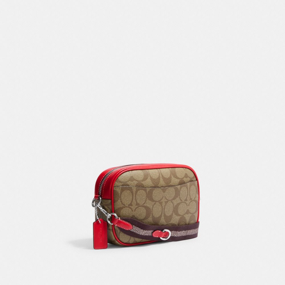 COACH FACTORY OUTLET PRICE CHART - CH351 - MINI JAMIE CAMERA BAG IN SIGNATURE CANVAS WITH WILD STRAWBERRY - SILVER/KHAKI/ELECTRIC RED