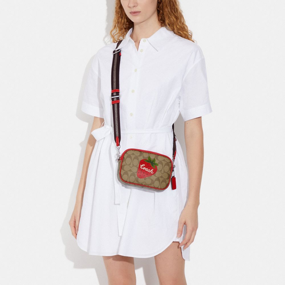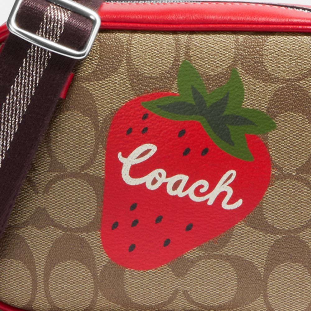 MINI JAMIE CAMERA BAG IN SIGNATURE CANVAS WITH WILD STRAWBERRY (COACH CH351)