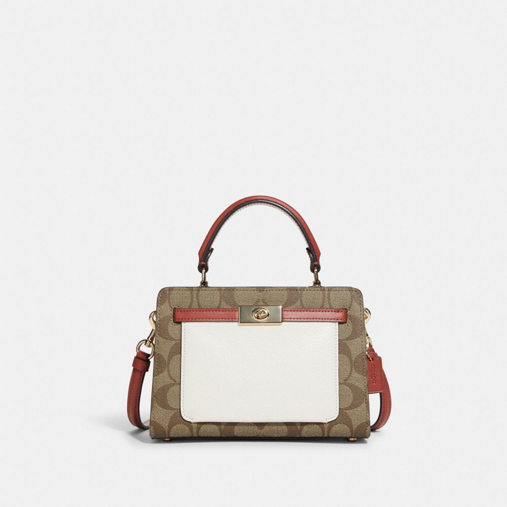 COACH FACTORY OUTLET PRICE CHART - C8318 - MINI LANE TOP HANDLE IN COLORBLOCK SIGNATURE CANVAS - GOLD/KHAKI CHALK MULTI