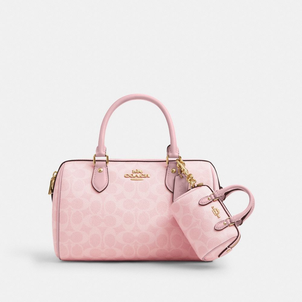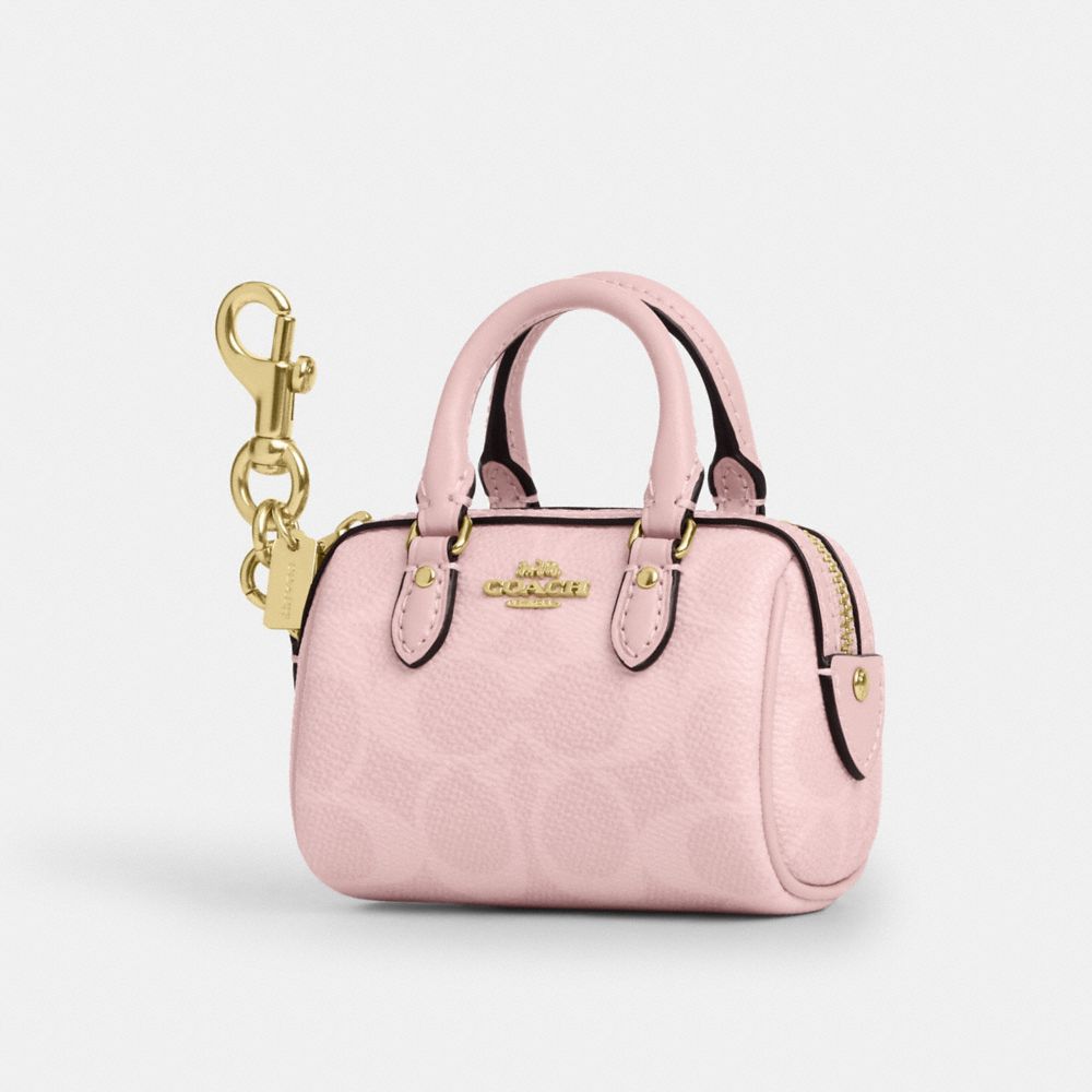 COACH FACTORY OUTLET PRICE CHART - CX068 - MINI ROWAN BAG CHARM IN SIGNATURE CANVAS - GOLD/POWDER PINK