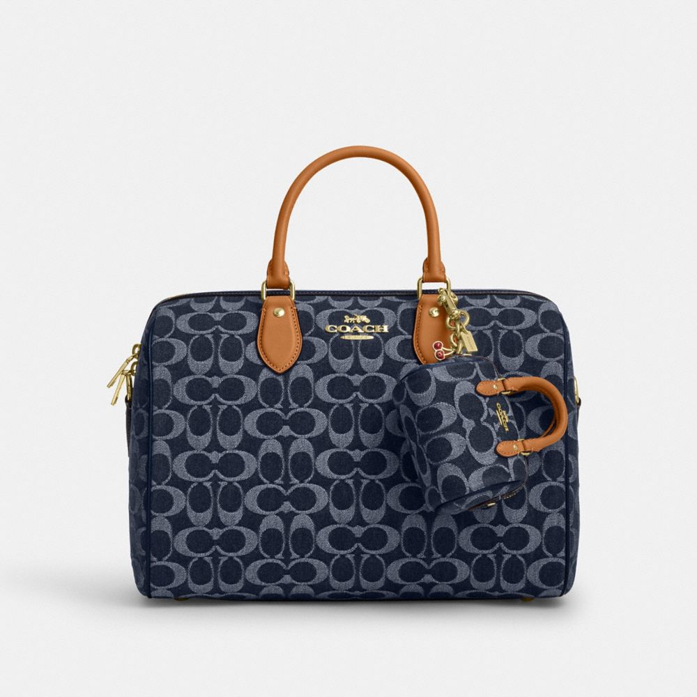 COACH FACTORY OUTLET PRICE CHART - CZ083 - MINI ROWAN BAG CHARM IN SIGNATURE DENIM - GOLD/DEN GOLD/NATURAL
