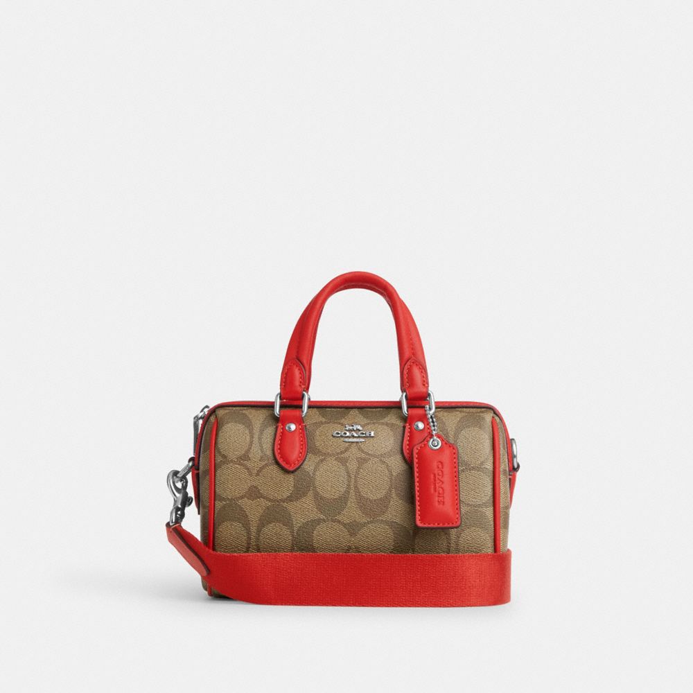 COACH FACTORY OUTLET PRICE CHART - CR338 - MINI ROWAN CROSSBODY IN SIGNATURE CANVAS - SILVER/KHAKI/MIAMI RED