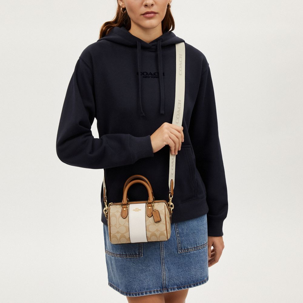 MINI ROWAN CROSSBODY IN SIGNATURE CANVAS WITH STRIPE (COACH CR243)