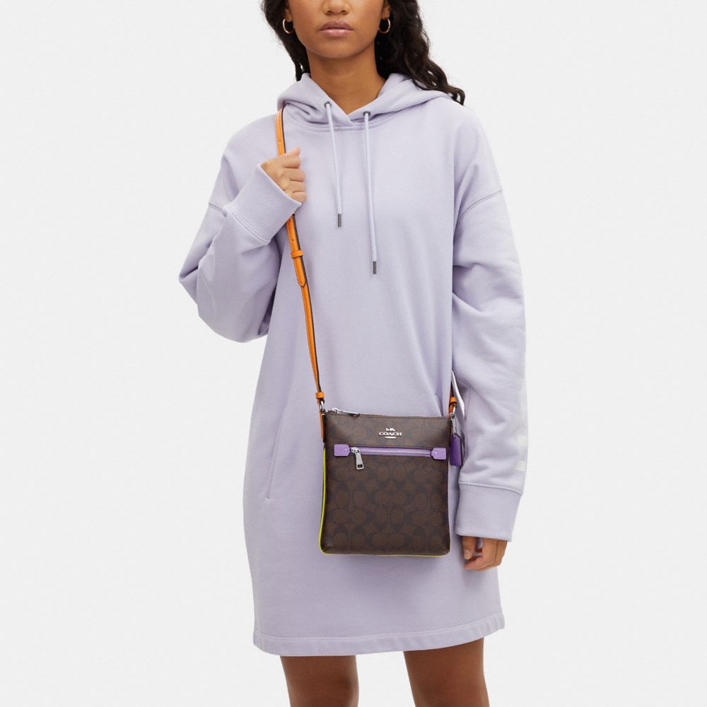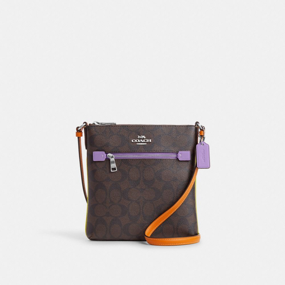 COACH FACTORY OUTLET PRICE CHART - CL671 - MINI ROWAN FILE BAG IN COLORBLOCK SIGNATURE CANVAS - SV/BROWN/IRIS MULTI