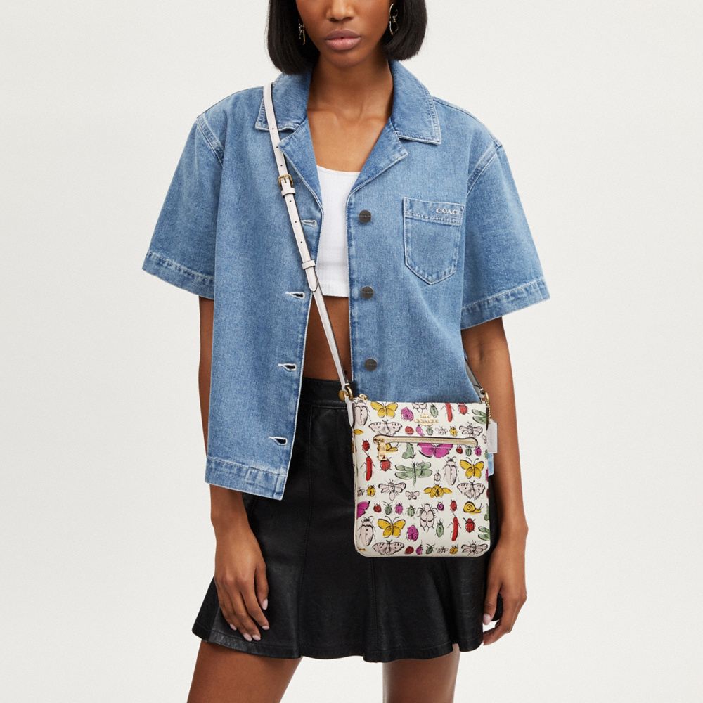 COACH FACTORY OUTLET PRICE CHART - CT258 - MINI ROWAN FILE BAG WITH CREATURE PRINT - GOLD/CHALK MULTI