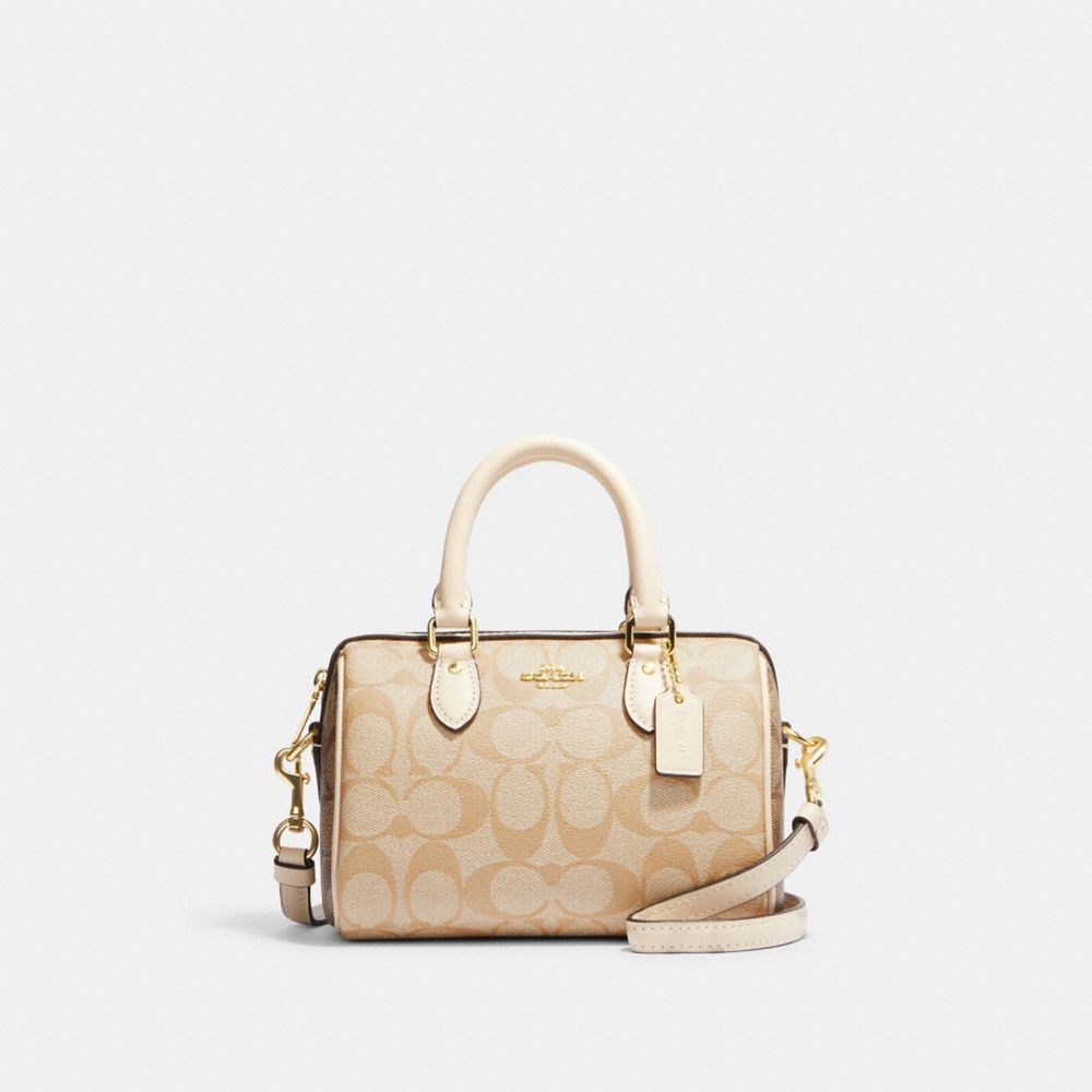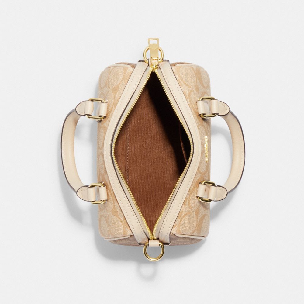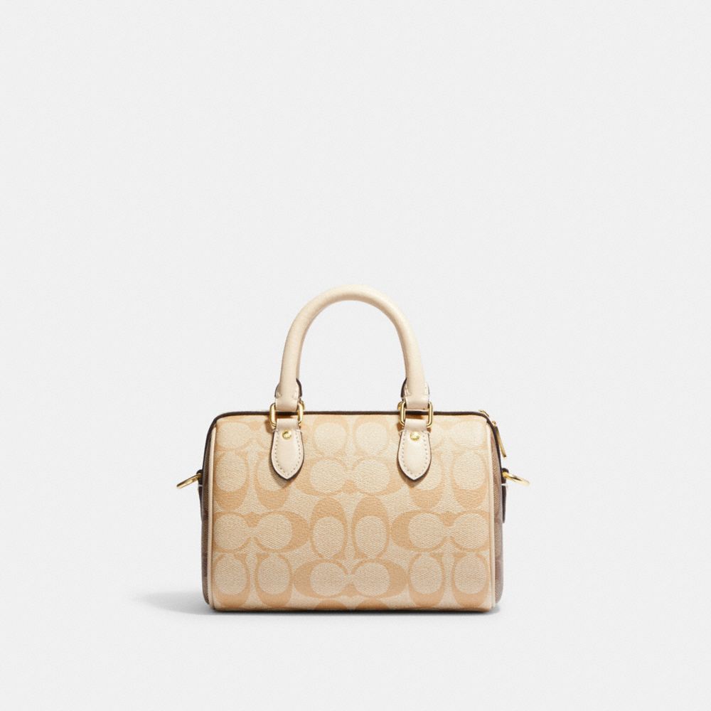 COACH FACTORY OUTLET PRICE CHART - CH160 - MINI ROWAN SATCHEL IN BLOCKED SIGNATURE CANVAS - GOLD/LIGHT KHAKI MULTI