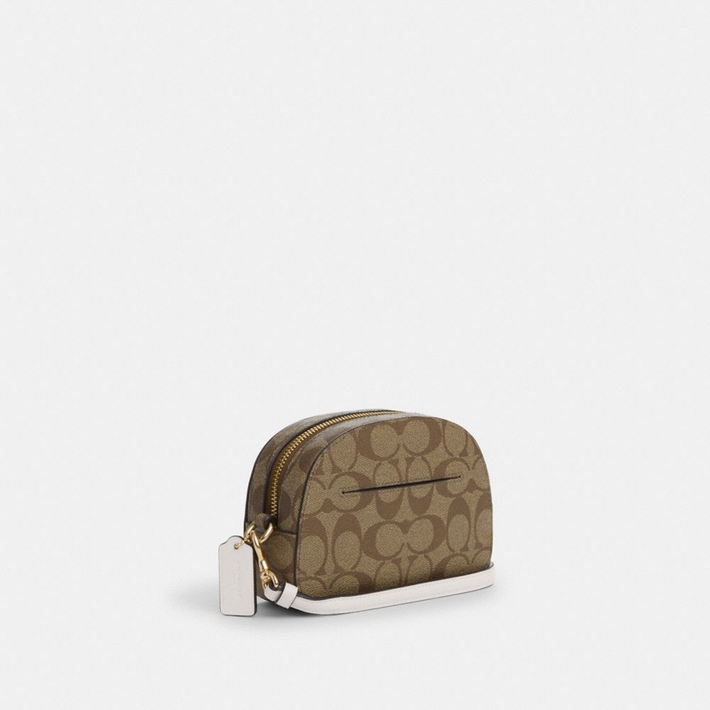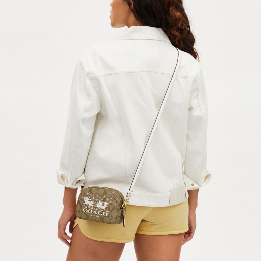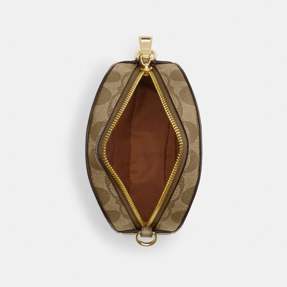 | Signature coated canvas and smooth leather | Two credit card slots | Zip closure, fabric lining | Outside slip pocket | Detachable strap with 23" drop for shoulder or crossbody wear | 6 1/2" (L) x 4 3/4" (H) x 2" (W)|Style No. CN708|