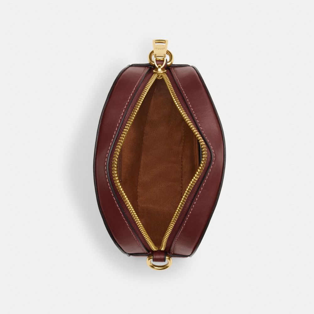 | Printed coated canvas and smooth leather | Two credit card slots | Zip closure, fabric lining | Outside slip pocket | Detachable strap with 23" drop for shoulder or crossbody wear | 6 1/2" (L) x 4 3/4" (H) x 2" (W)|Style No. CN710|
