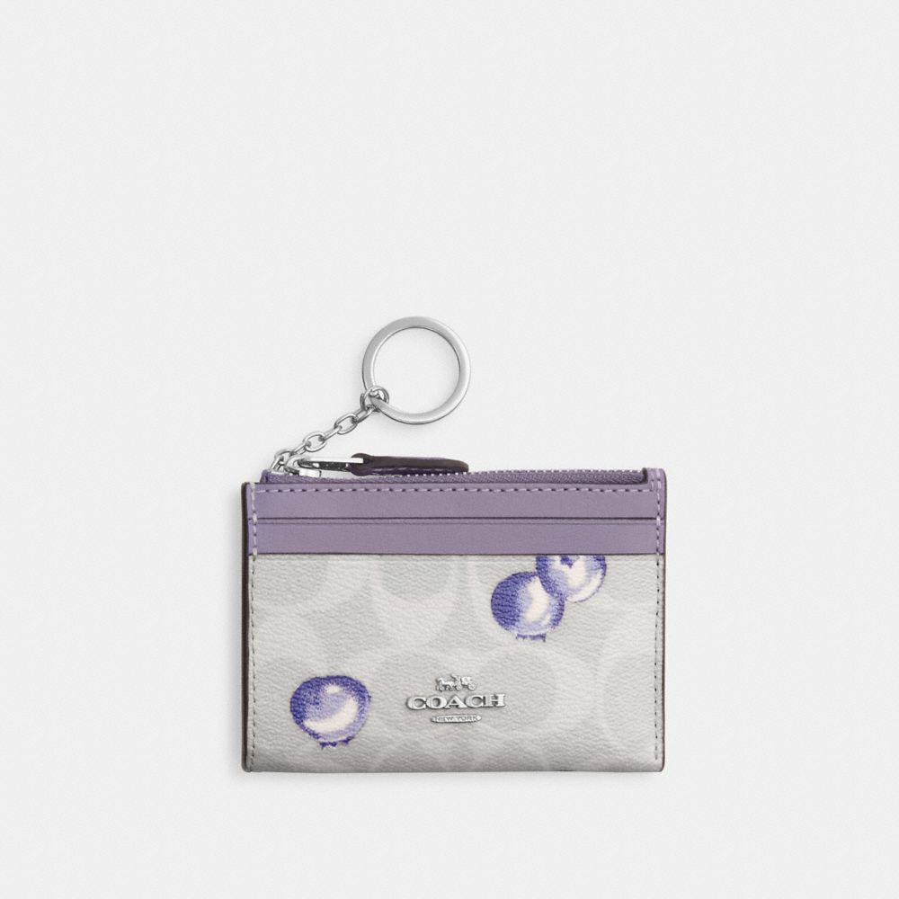 COACH FACTORY OUTLET PRICE CHART - CR821 - MINI SKINNY ID CASE IN SIGNATURE CANVAS WITH BLUEBERRY PRINT - SILVER/CHALK/LIGHT VIOLET