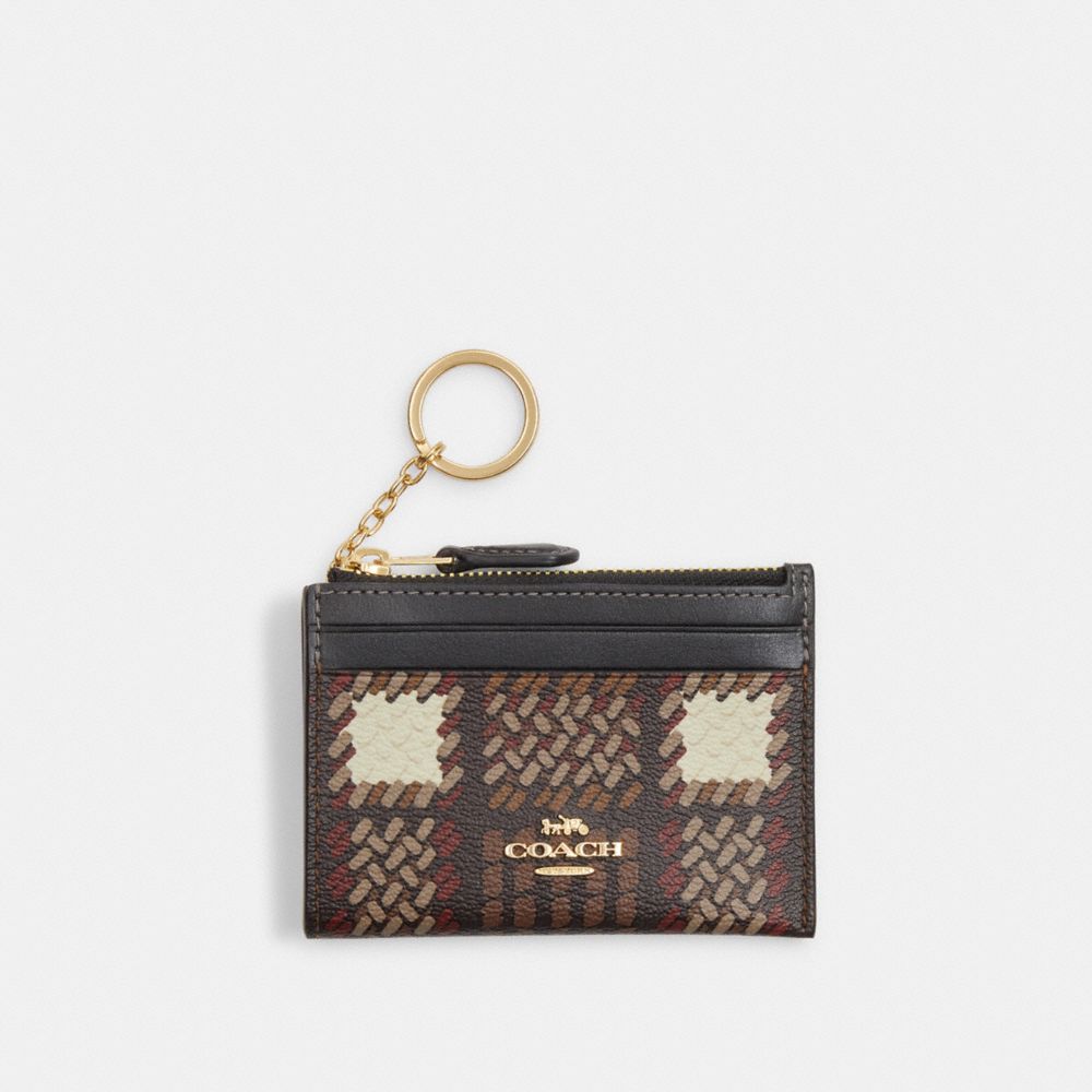 MINI SKINNY ID CASE WITH BRUSHED PLAID PRINT (COACH CN018)