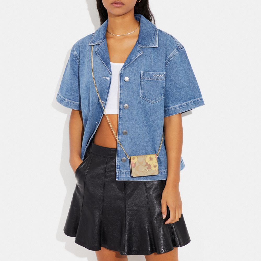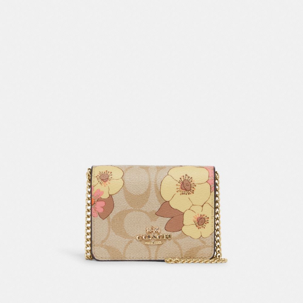 MINI WALLET ON A CHAIN IN SIGNATURE CANVAS WITH FLORAL CLUSTER PRINT (COACH CH714)