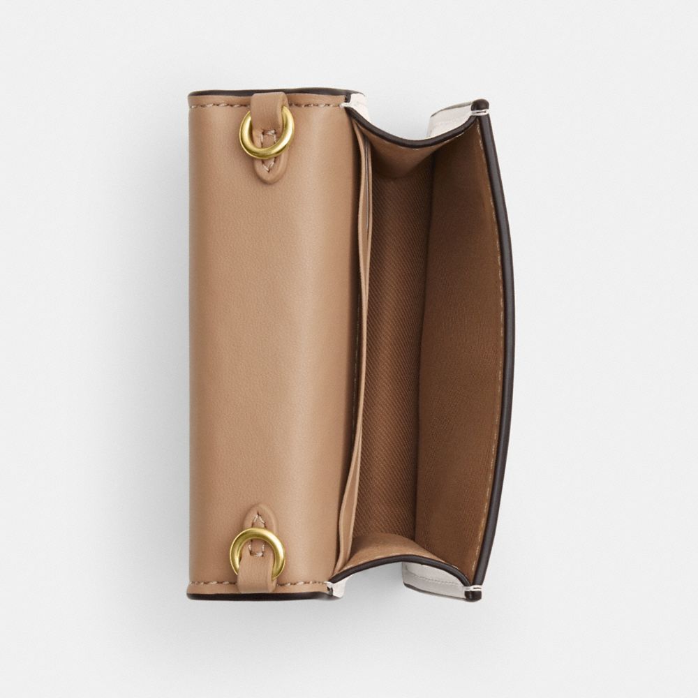 | Printed coated canvas and smooth leather | Two credit card slots | Snap closure, fabric lining | Outside open pocket | Detachable chain strap with 23 1/4" drop for shoulder or crossbody wear | 4" (L) x 3" (H) x 1" (W)|Style No. CR373|