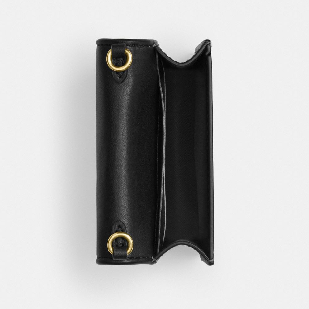 | Printed coated canvas and smooth leather | Two credit card slots | Snap closure, fabric lining | Outside open pocket | Detachable chain strap with 23 1/4" drop for shoulder or crossbody wear | 4" (L) x 3" (H) x 1" (W)|Style No. CX151|