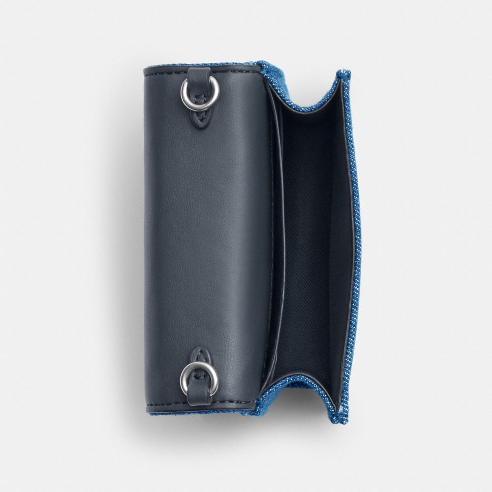 COACH FACTORY OUTLET PRICE CHART - CN356 - MINI WALLET ON A CHAIN WITH RIVETS - SILVER/DENIM
