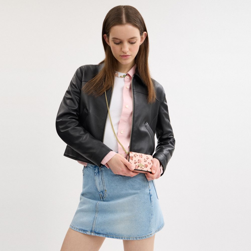 MINI WALLET ON A CHAIN WITH ROSETTE PRINT (COACH CZ022)