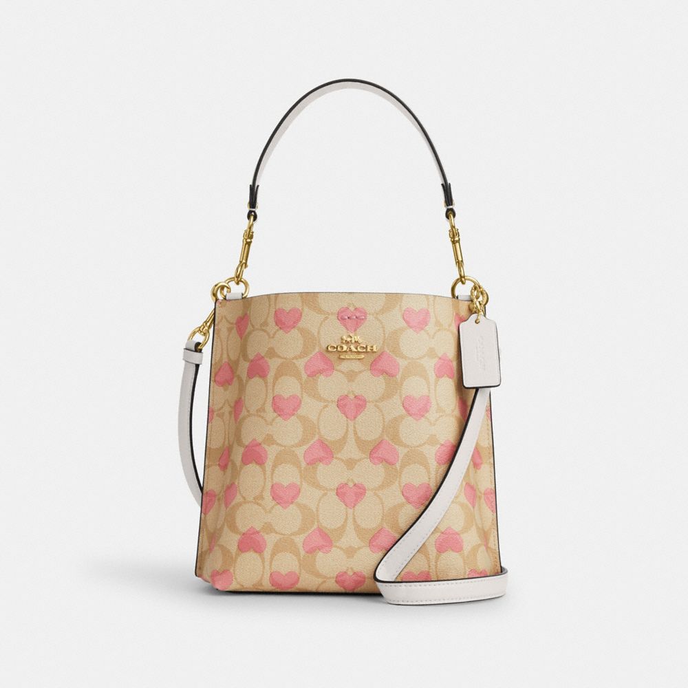 MOLLIE BUCKET BAG 22 IN SIGNATURE CANVAS WITH HEART PRINT (COACH CP056)