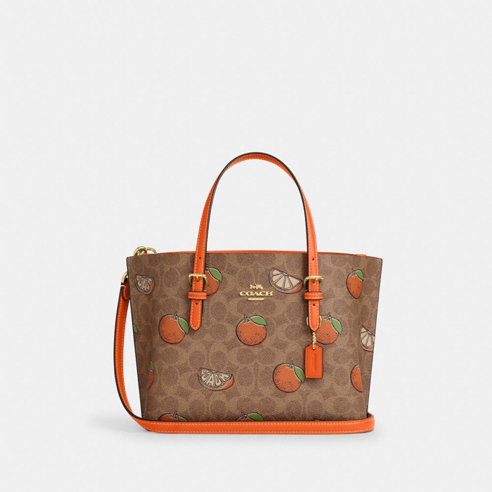MOLLIE TOTE BAG 25 IN SIGNATURE CANVAS WITH ORANGE PRINT (COACH CBB55)