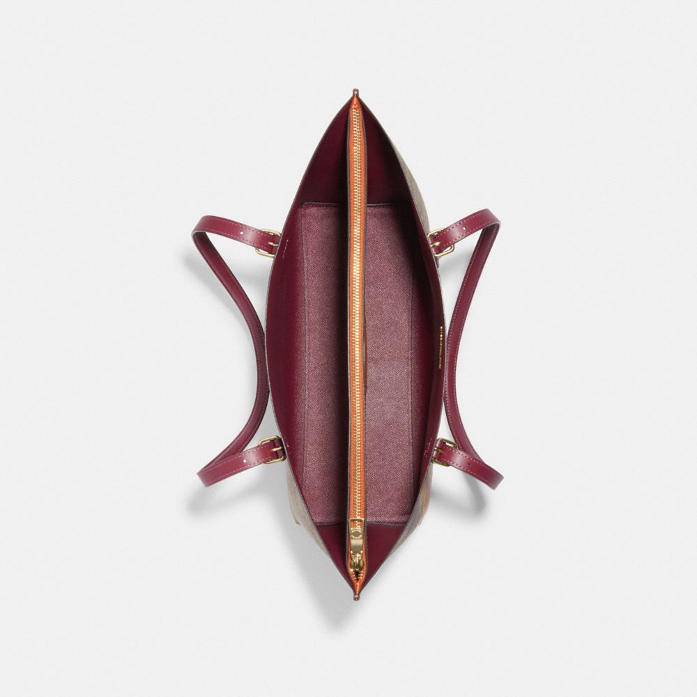 | Signature coated canvas and smooth leather | Inside multifunction pocket | Zip-top closure, fabric lining | Handles with 10 1/4" drop | Side open compartments | 13 1/4" (L) x 11" (H) x 5" (W)|Style No. CE576|