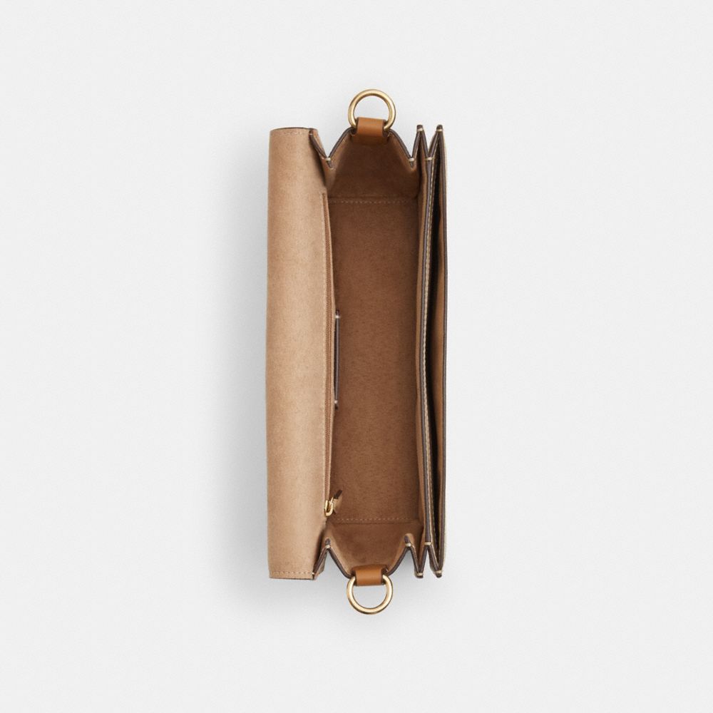 | Signature coated canvas and refined calf leather | Inside zip and multifunction pockets | Snap closure, fabric lining | Detachable handle with 9" drop | Outside open pocket | Detachable strap with 21 1/4" drop for shoulder or crossbody wear | 10 1/2" (L) x 5 1/2" (H) x 2 1/2" (W)|Style No. CR332|