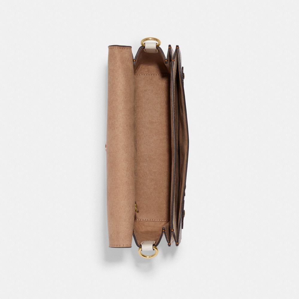 | Signature coated canvas and smooth leather | Inside zip and multifunction pockets | Snap closure, fabric lining | Detachable handle with 9" drop | Outside open pocket | Detachable strap with 21 1/4" drop for shoulder or crossbody wear | 10 1/2" (L) x 5 1/2" (H) x 2 1/2" (W)|Style No. CH341|