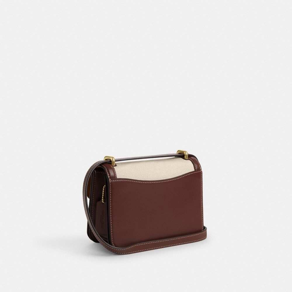 | Canvas and refined calf leather | Inside zip and multifunction pockets | Snap closure, fabric lining | Outside open pocket | Adjustable strap with 21 1/2" drop for shoulder or crossbody wear | 7 1/4" (L) x 5 3/4" (H) x 2 1/4" (W) | Exclusive of trim, this piece is crafted of cotton sourced from farms that use regenerative agricultural practices—those that help to maintain and rejuvenate land, increase biological diversity and soil health, and could lead to increased carbon absorption|Style No. CR328|