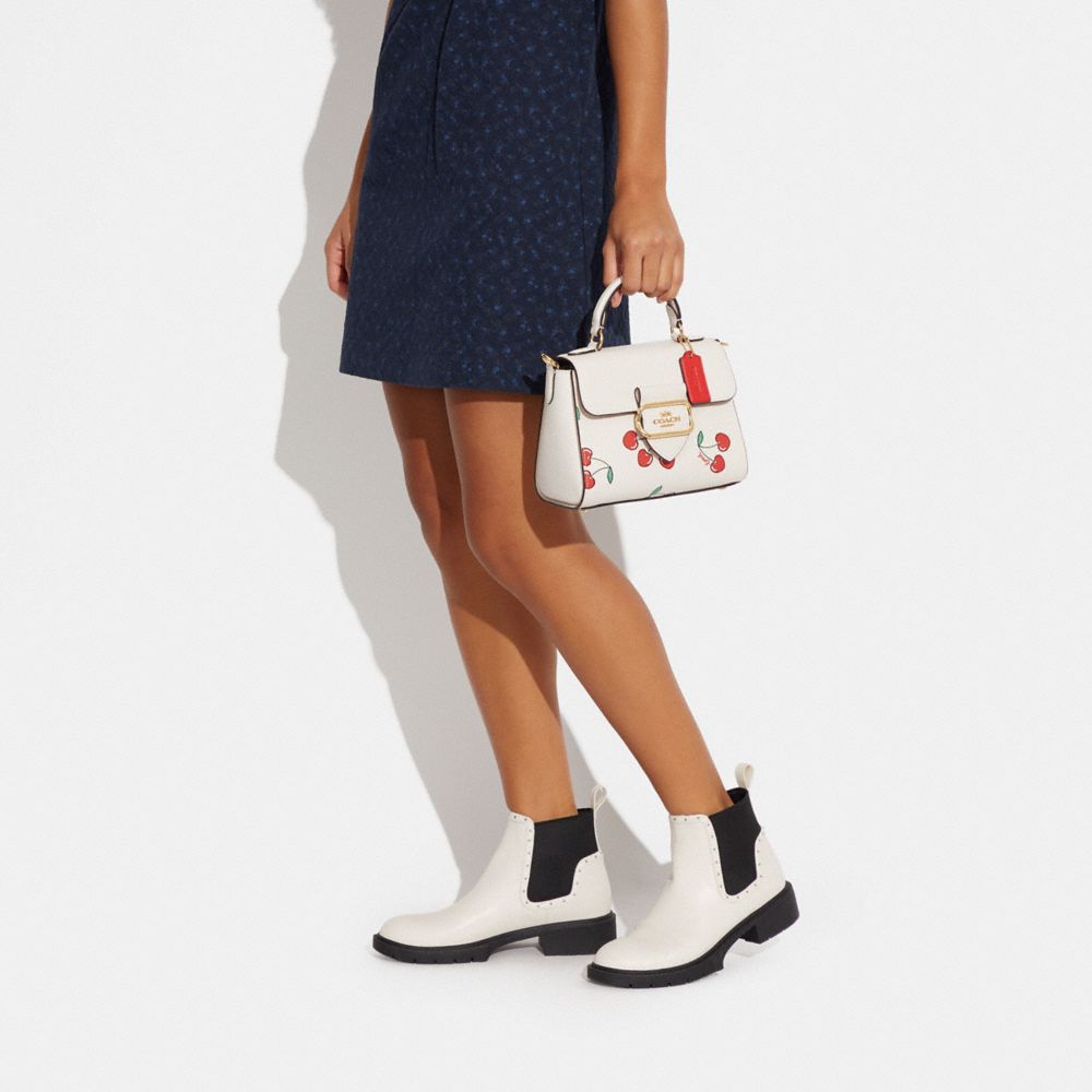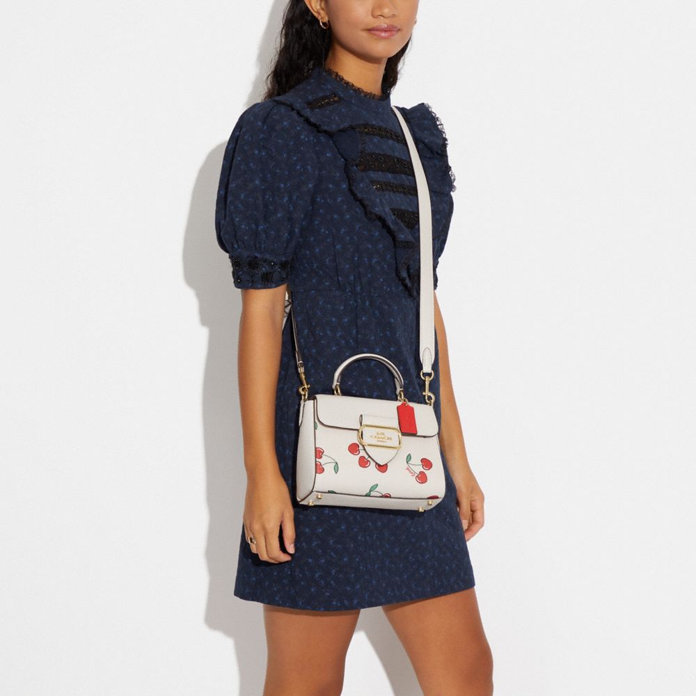 COACH FACTORY OUTLET PRICE CHART - CF419 - MORGAN TOP HANDLE SATCHEL WITH HEART CHERRY PRINT - GOLD/CHALK MULTI