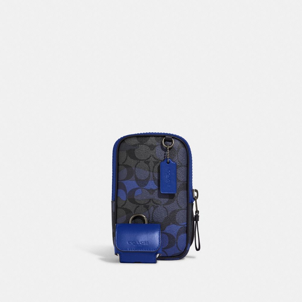 COACH FACTORY OUTLET PRICE CHART - CC026 - MULTIFUNCTION PHONE PACK IN SIGNATURE CANVAS WITH CAMO PRINT - GUNMETAL/CHARCOAL/SPORT BLUE MULTI