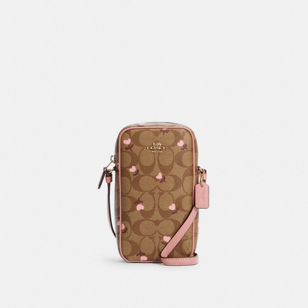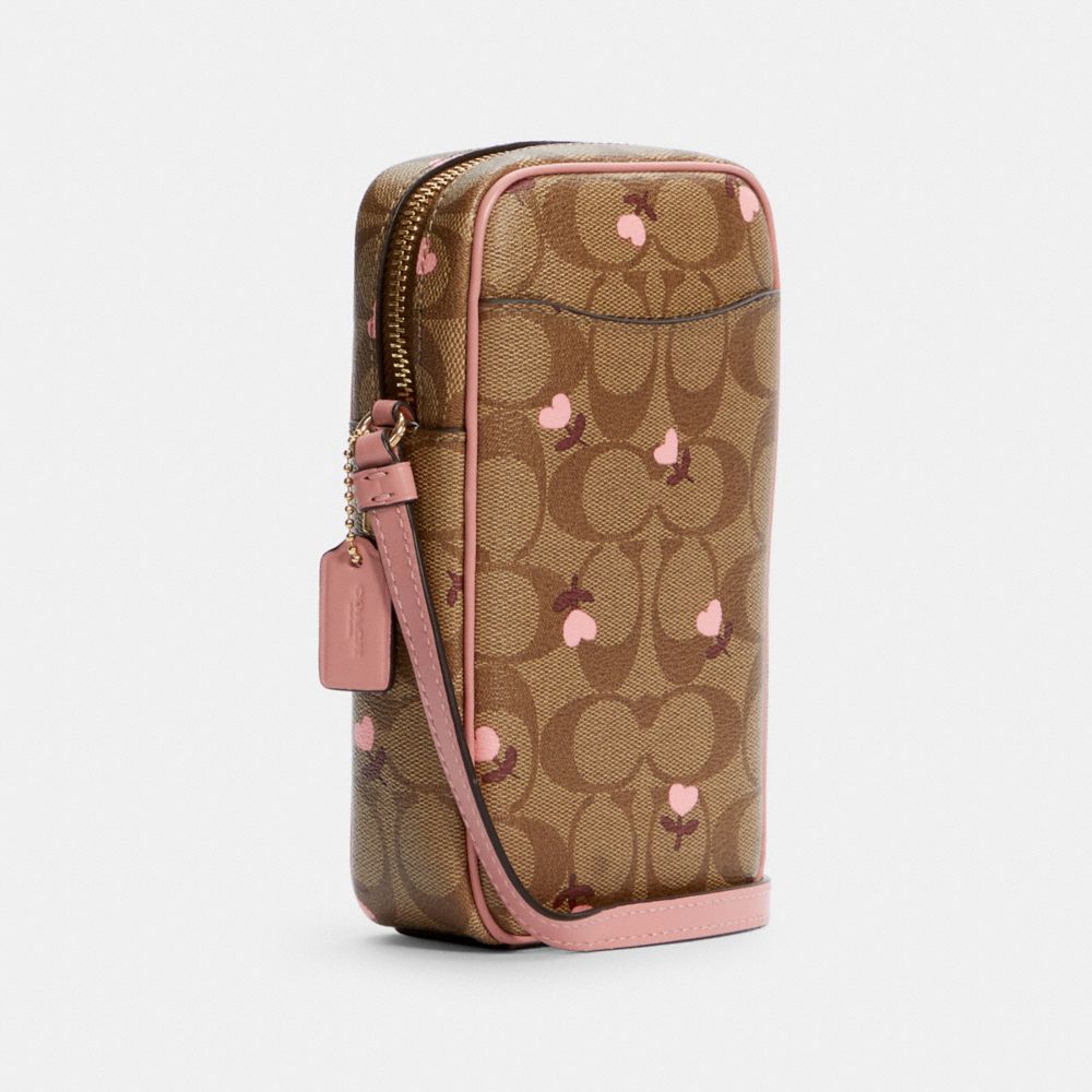 NORTH/SOUTH ZIP CROSSBODY IN SIGNATURE CANVAS WITH HEART FLORAL PRINT (COACH C2910)