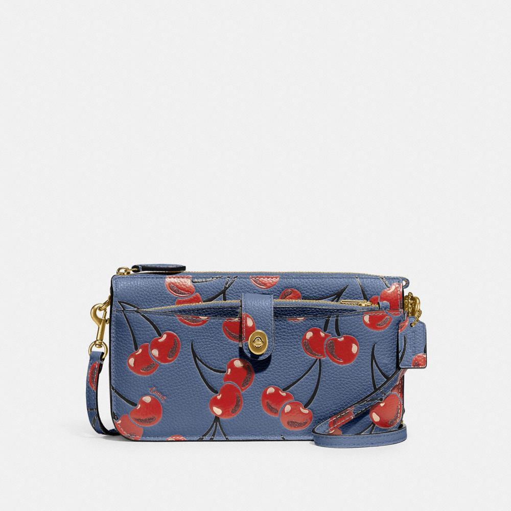 COACH FACTORY OUTLET PRICE CHART - CA799 - NOA POP UP MESSENGER WITH CHERRY PRINT - BRASS/WASHED CHAMBRAY