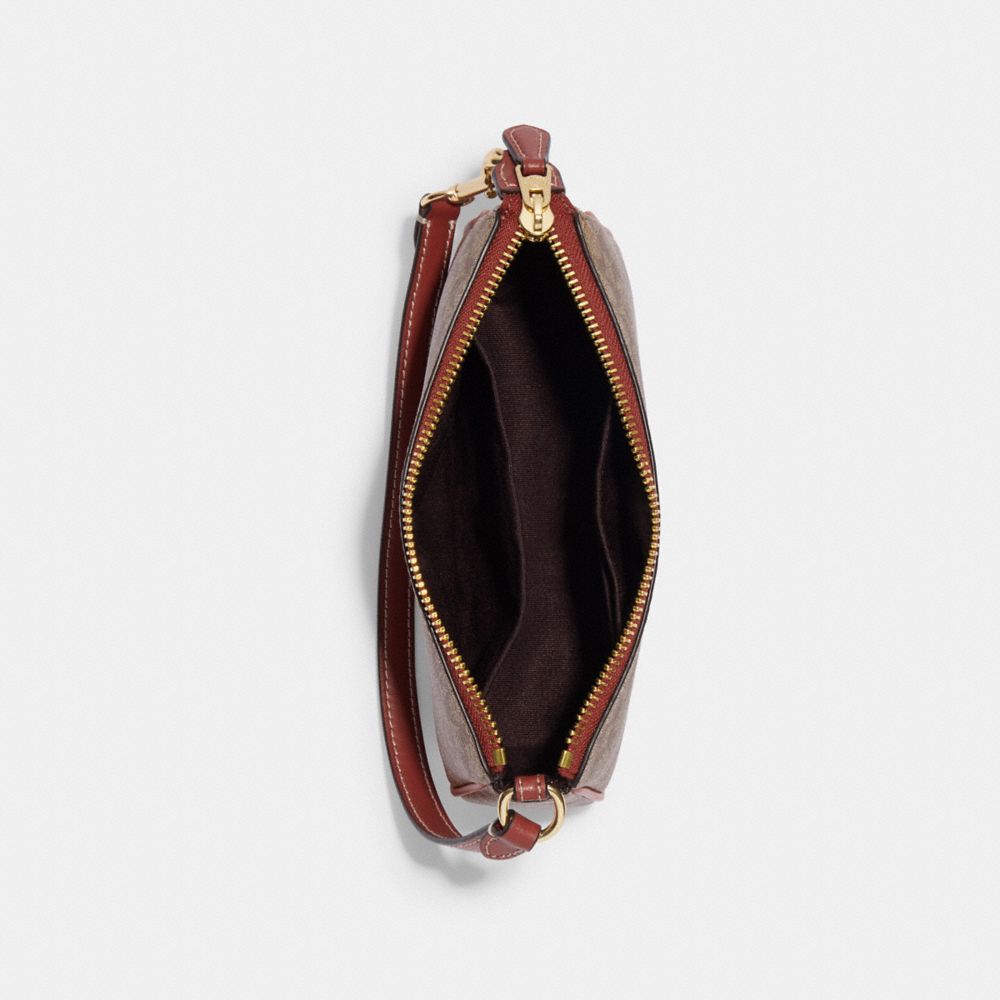 | Signature coated canvas and smooth leather | Two credit card slots | Inside multifunction pocket | Zip-top closure, fabric lining | Handle with 6 1/4" drop | 7 1/2" (L) x 4 1/2" (H) x 2" (W)|Style No. CE698|