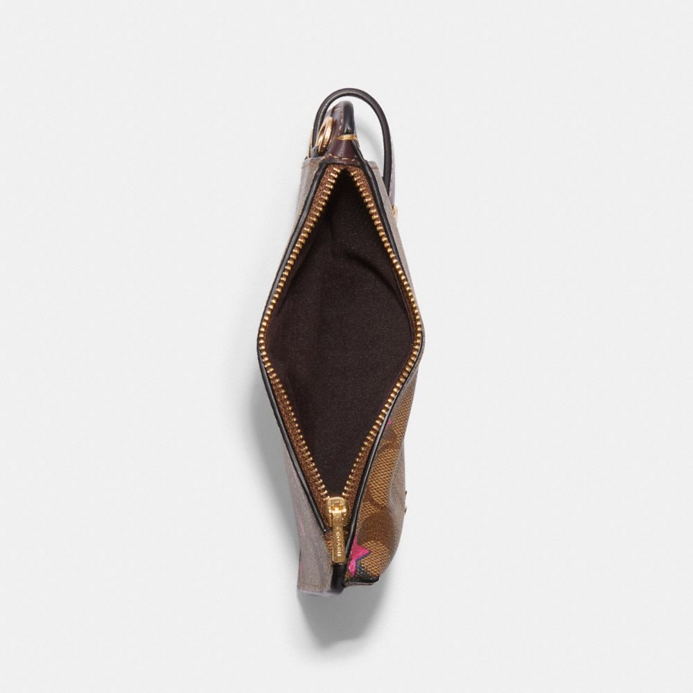 Signature coated canvas and smooth leather| Snap phone pocket| Zip coin pocket| Outside slip pocket| Detachable strap with 23" drop for shoulder or crossbody wear| 4" (L) x 7" (H) x 3/4" (W)Style No. C7286
