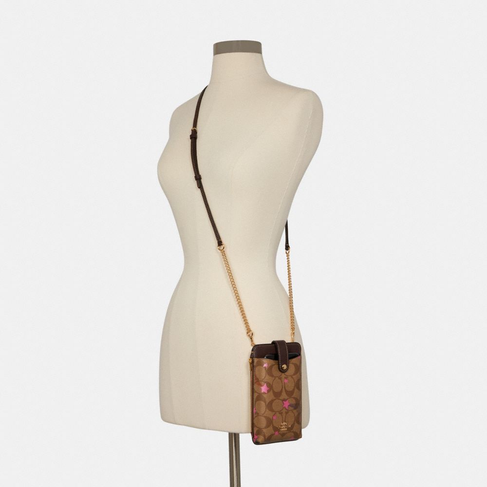 NORTH/SOUTH PHONE CROSSBODY IN SIGNATURE CANVAS WITH DISCO STAR PRINT (COACH C7286)
