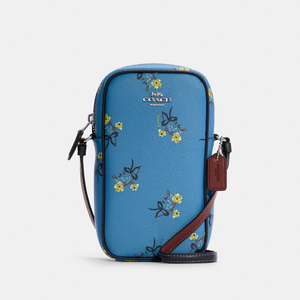 COACH FACTORY OUTLET PRICE CHART - C7380 - NORTH/SOUTH ZIP PHONE CROSSBODY WITH FLORAL BOW PRINT - SILVER/BLUE MULTI
