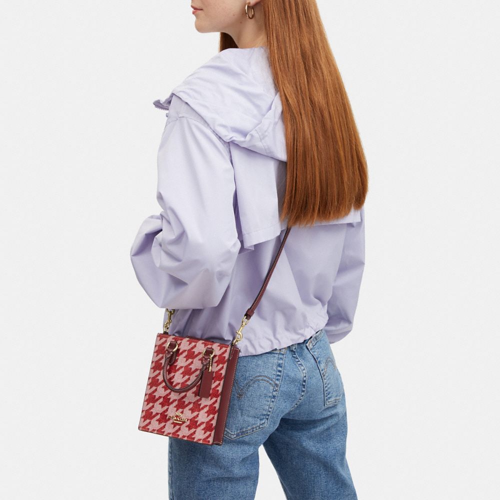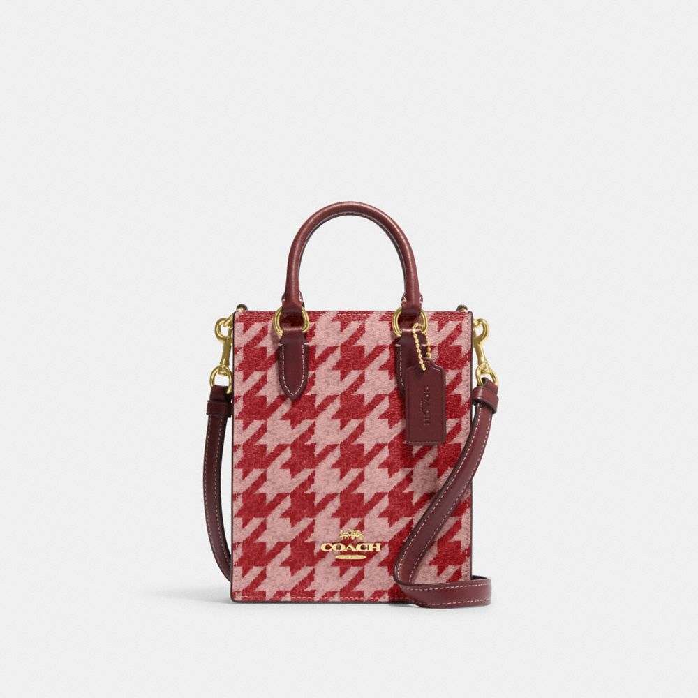 COACH FACTORY OUTLET PRICE CHART - CJ677 - NORTH SOUTH MINI TOTE WITH HOUNDSTOOTH PRINT - IM/PINK/RED