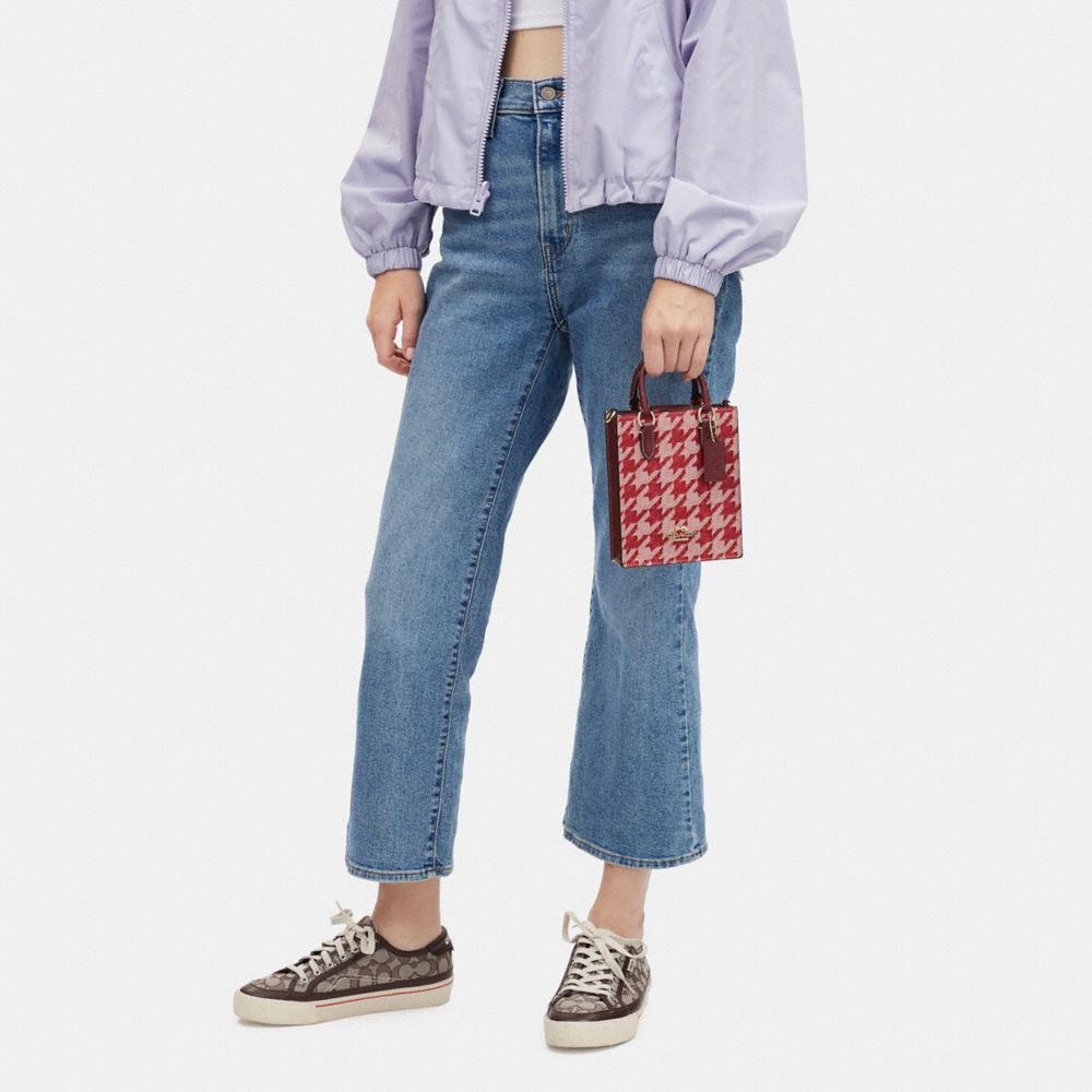 NORTH SOUTH MINI TOTE WITH HOUNDSTOOTH PRINT (COACH CJ677)