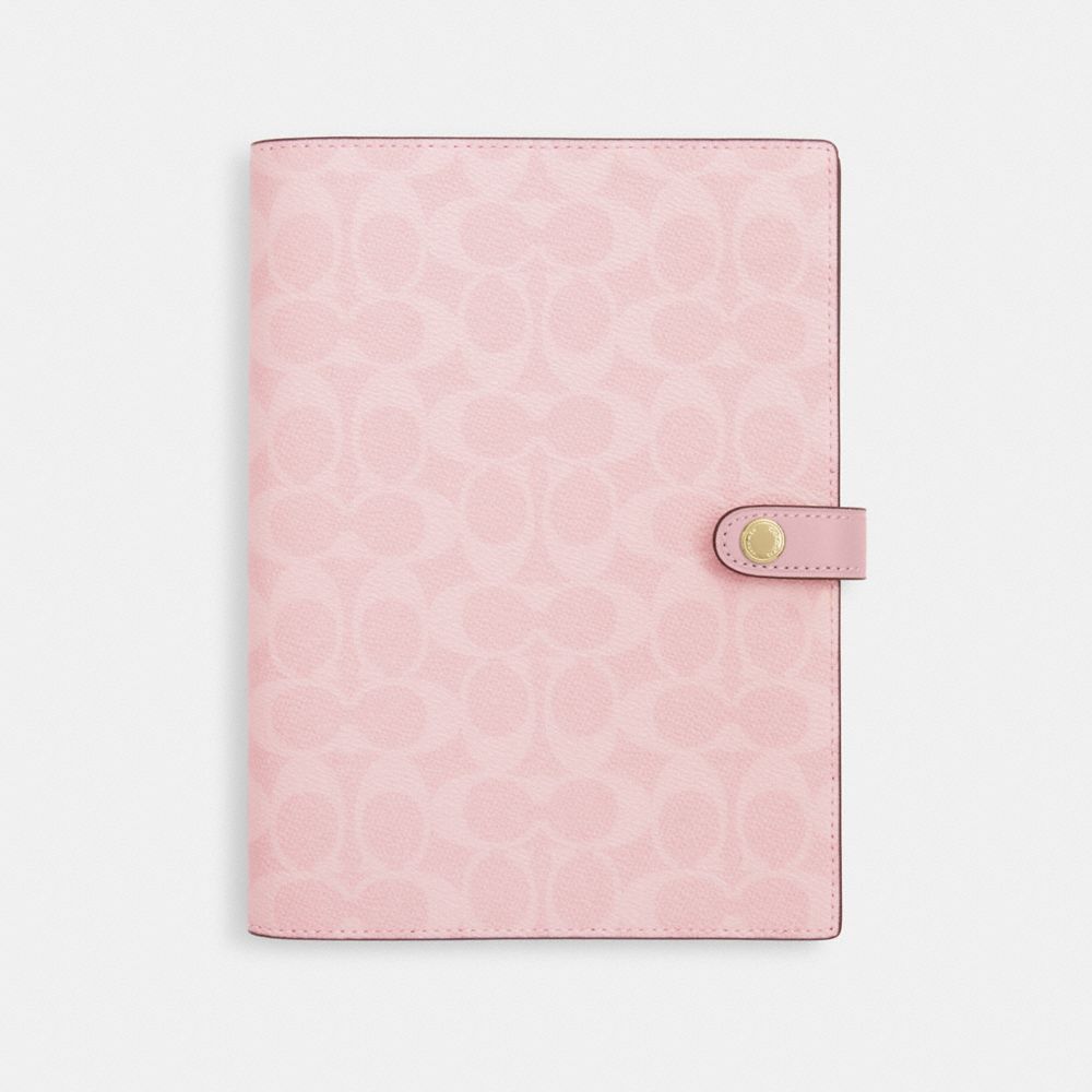 COACH FACTORY OUTLET PRICE CHART - CZ198 - NOTEBOOK IN SIGNATURE CANVAS - GOLD/POWDER PINK