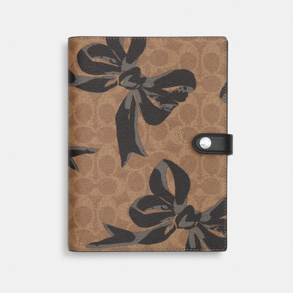 NOTEBOOK IN SIGNATURE CANVAS WITH BOW PRINT (COACH CY991)