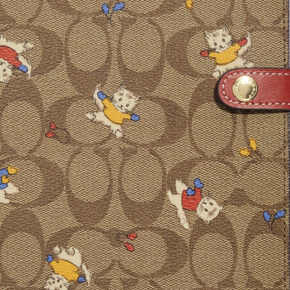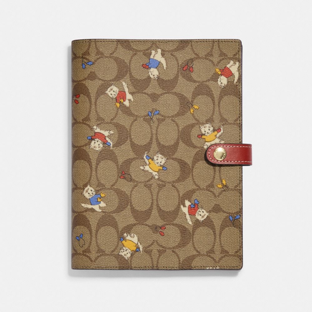 COACH FACTORY OUTLET PRICE CHART - CF382 - NOTEBOOK IN SIGNATURE CANVAS WITH CAT MITTENS PRINT - GOLD/KHAKI MULTI