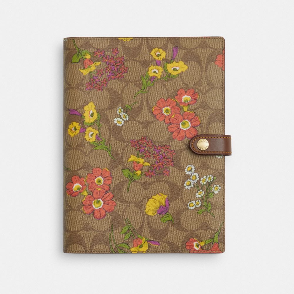 COACH FACTORY OUTLET PRICE CHART - CR423 - NOTEBOOK IN SIGNATURE CANVAS WITH FLORAL PRINT - GOLD/KHAKI MULTI