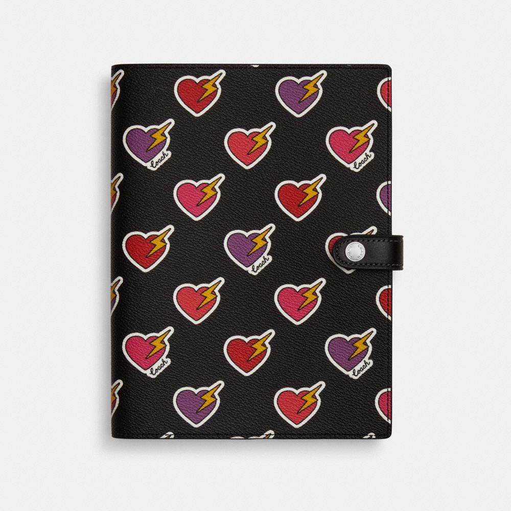 NOTEBOOK WITH HEART BOLT PRINT (COACH CW543)