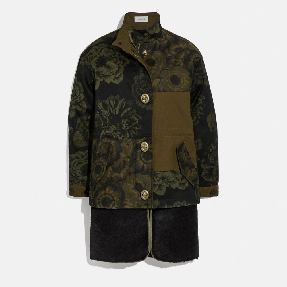 PATCHWORK PARKA WITH KAFFE FASSETT PRINT AND REMOVABLE SHEARLING LINER (COACH 78927)