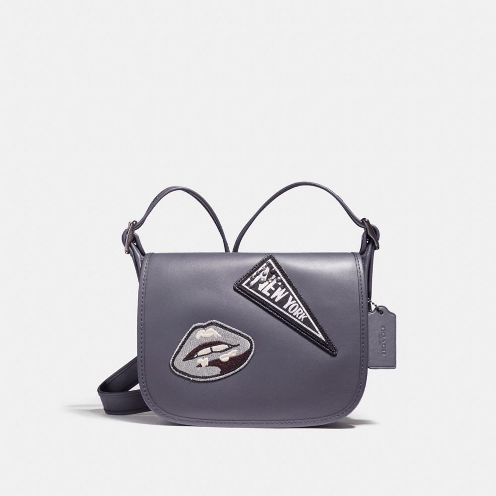 COACH FACTORY OUTLET PRICE CHART - F20916 - PATRICIA SADDLE 23 IN REFINED CALF LEATHER WITH VARSITY PATCHES - ANTIQUE NICKEL/MIDNIGHT