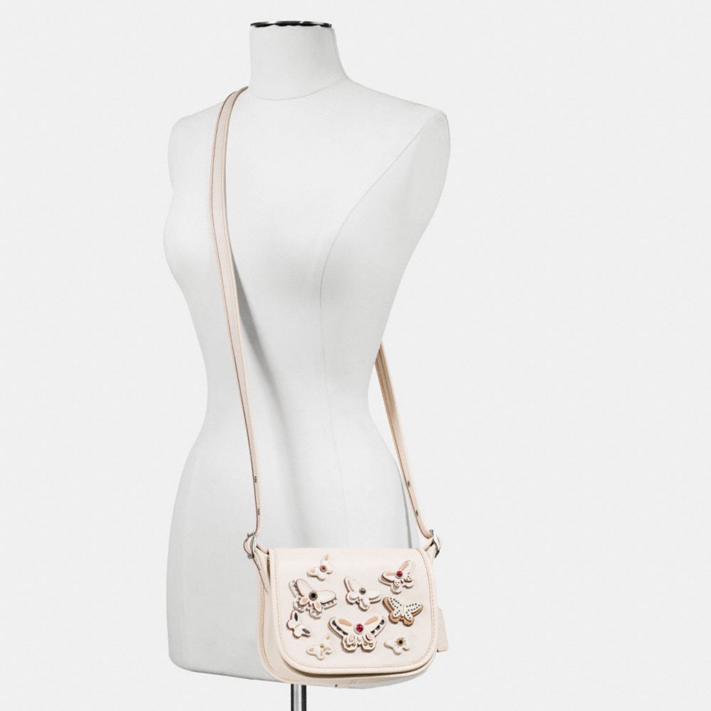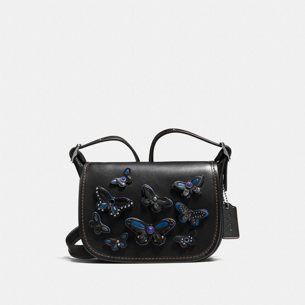 COACH FACTORY OUTLET PRICE CHART - F59360 - PATRICIA SADDLE BAG 18 IN NATURAL LEATHER WITH ALL OVER BUTTERFLY APPLIQUE - SILVER/BLACK