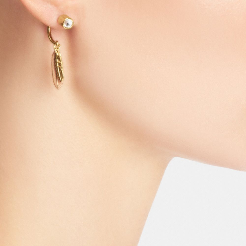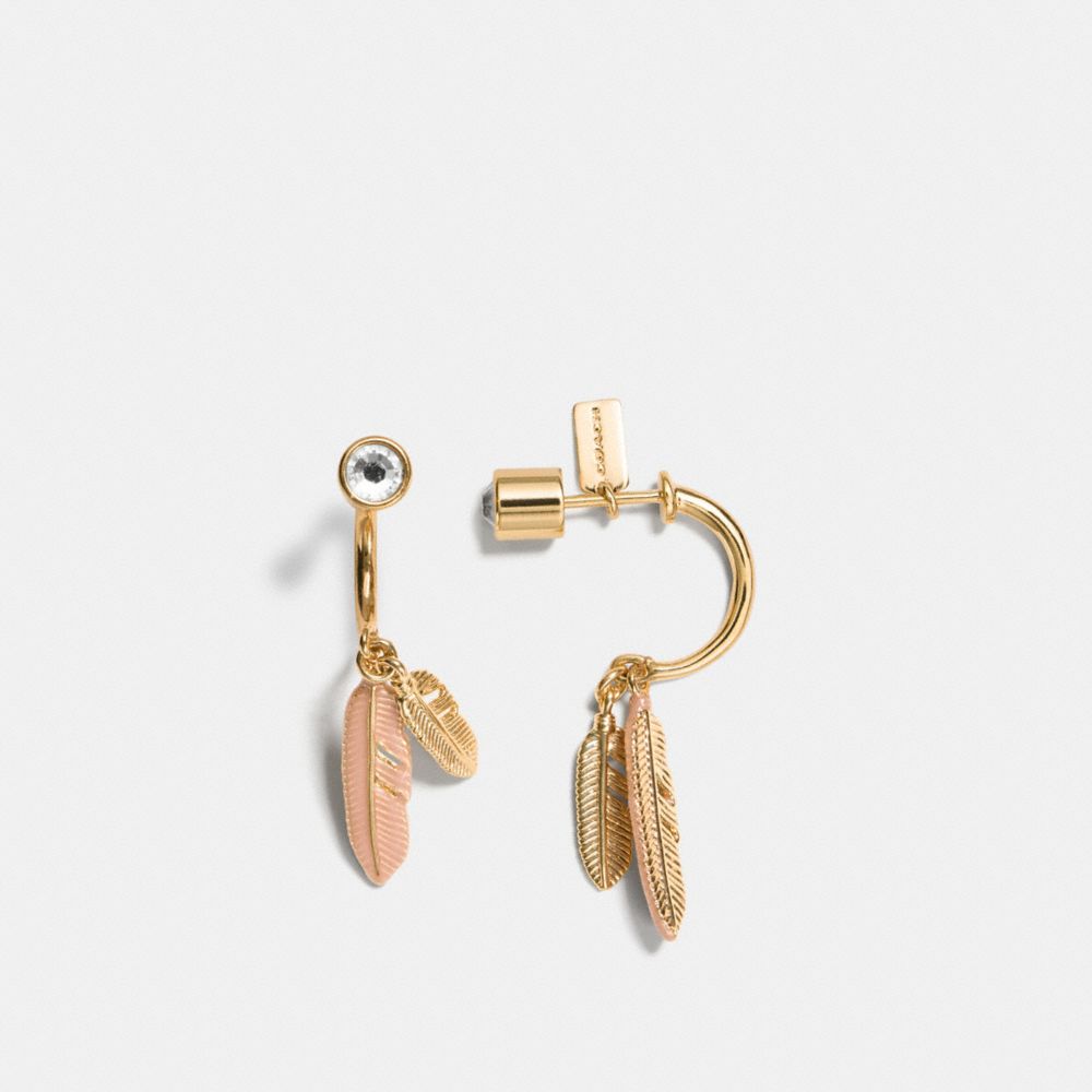 COACH FACTORY OUTLET PRICE CHART - F90601 - PAVE METAL AND ENAMEL FEATHER EARRINGS - GOLD/BLUSH