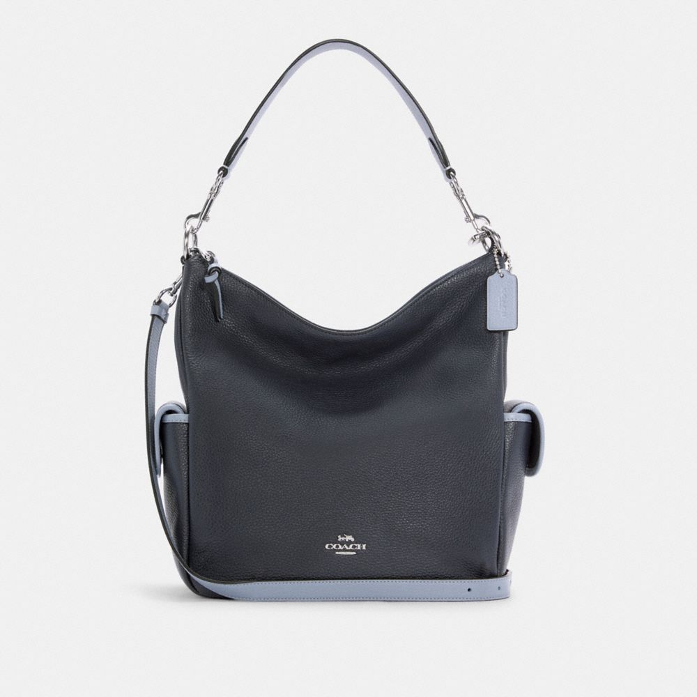 Refined pebble leather| Inside zip pocket| Zip-top closure, fabric lining| Detachable handle with 7" drop| Outside zip and snap pockets| Detachable strap with 20 3/4" drop for shoulder or crossbody wear| 10 3/4" (L) x 11 3/4" (H) x 5 1/4" (W)