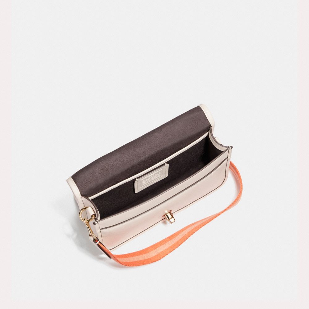 COACH FACTORY OUTLET PRICE CHART - F20913 - PENNY CROSSBODY IN REFINED CALF LEATHER WITH VARSITY PATCHES AND WEBBED STRAP - LIGHT GOLD/CHALK
